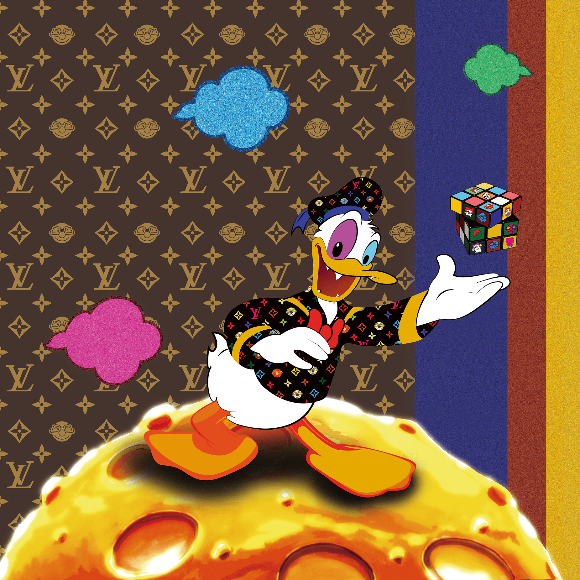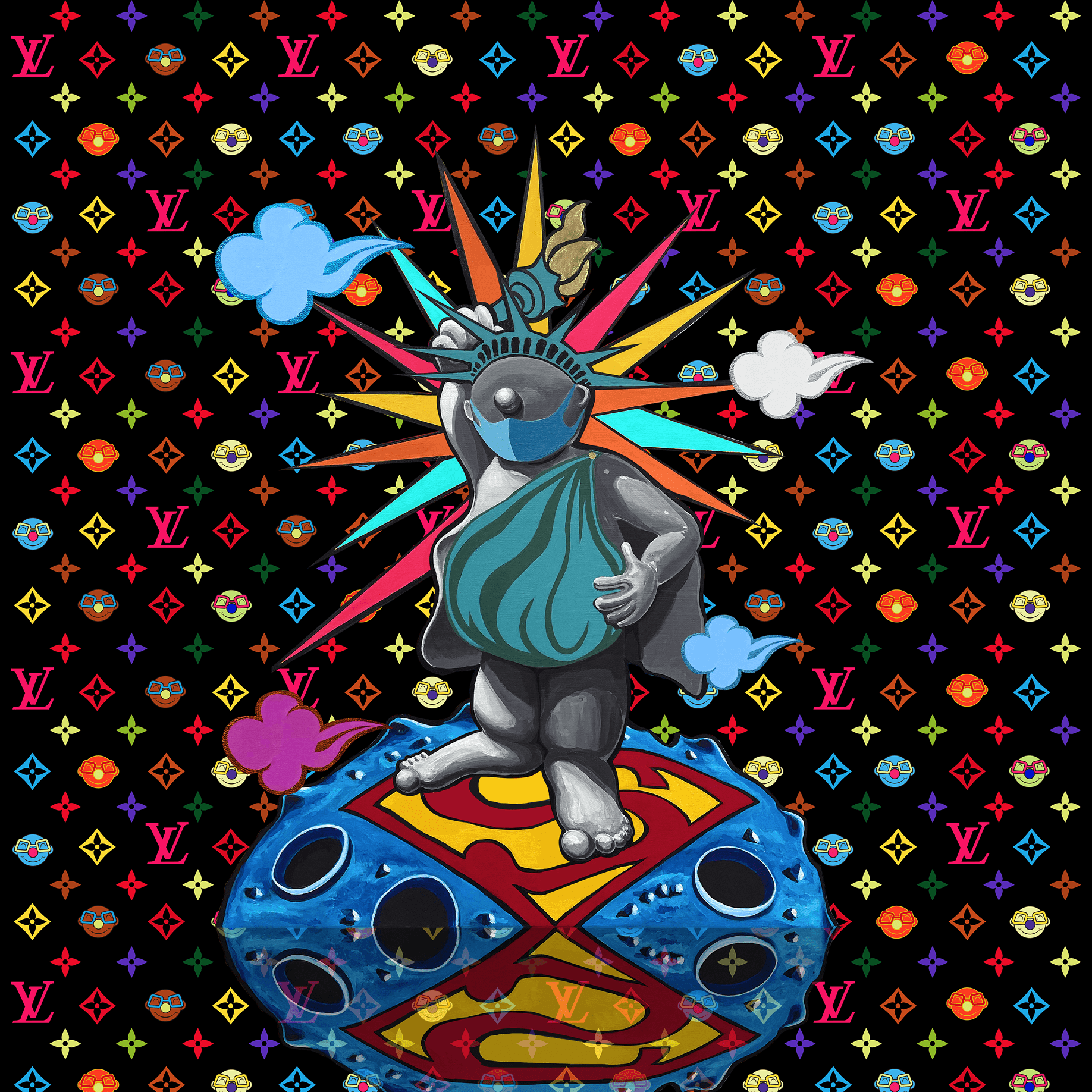Hank Kim’s digital prints combine the reproducibility of traditional printmaking with the infinite replicability of digital media to fundamentally reconfigure the mode of artistic existence. Coupled with NFT, these works function as meta-media experiments that redefine originality and aura. Whereas traditional prints rely on limited editions, the digital print secures digital originality via blockchain. On the digital screen, Super Baby forms a “digital matière” through pixel-level luminosity and layered transparency, creating a virtual presence that enables viewers to experience the fluid boundary between reality and virtuality. By intersecting with pop-culture icons, Super Baby triggers irony within the semiotics of consumer culture and demonstrates that art is not merely consumed imagery, but a language of reflection and empathy.